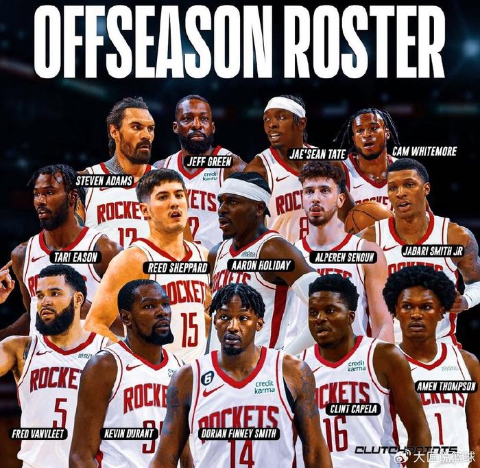 24-25赛季火箭队在结束重建的第二个赛季拿下西部第二的好战绩,但在季后赛首轮被勇士黑七出局,面对这样的局面,休城也在休赛期到来后火力全开。